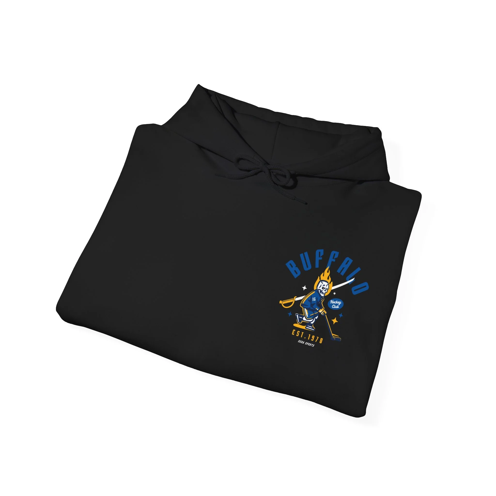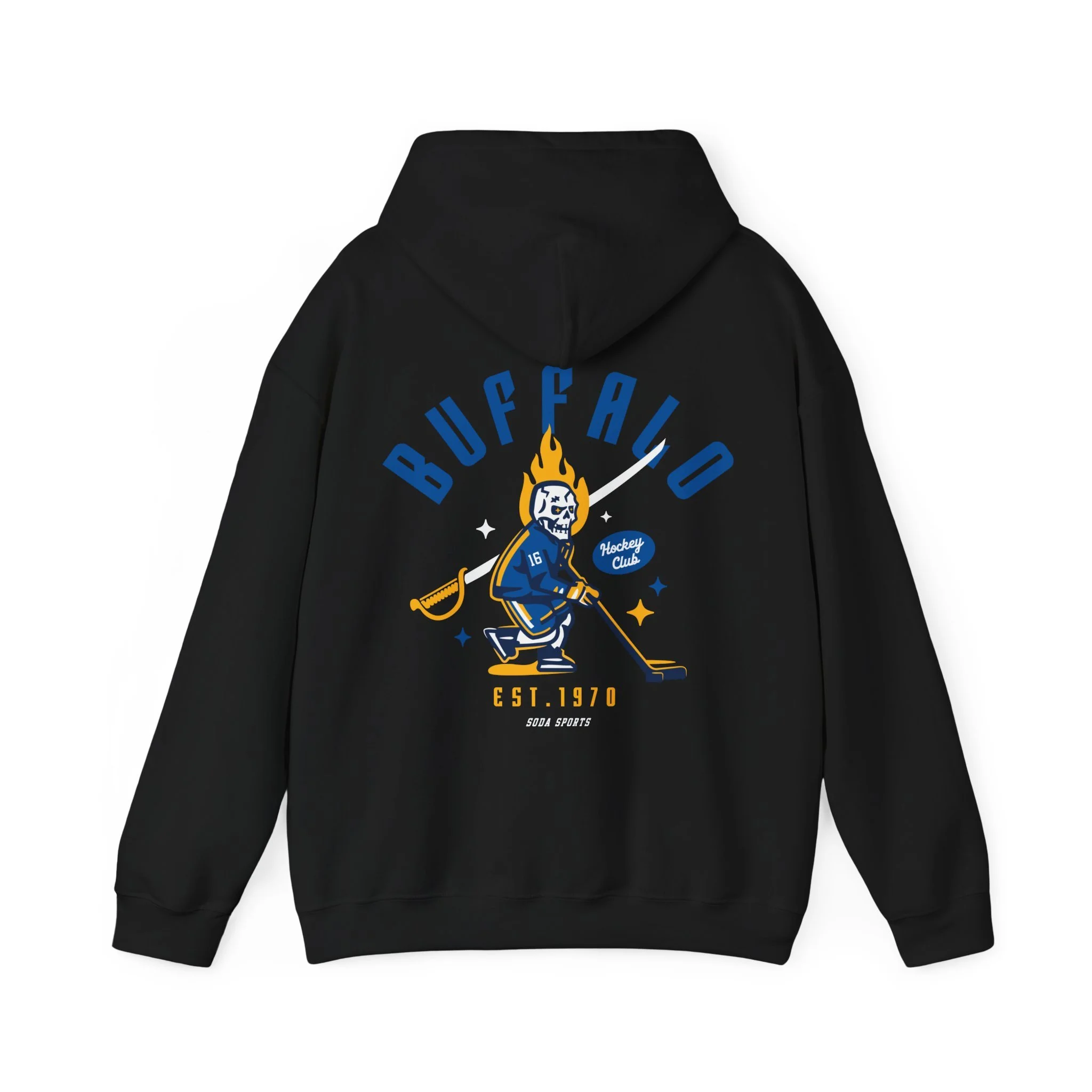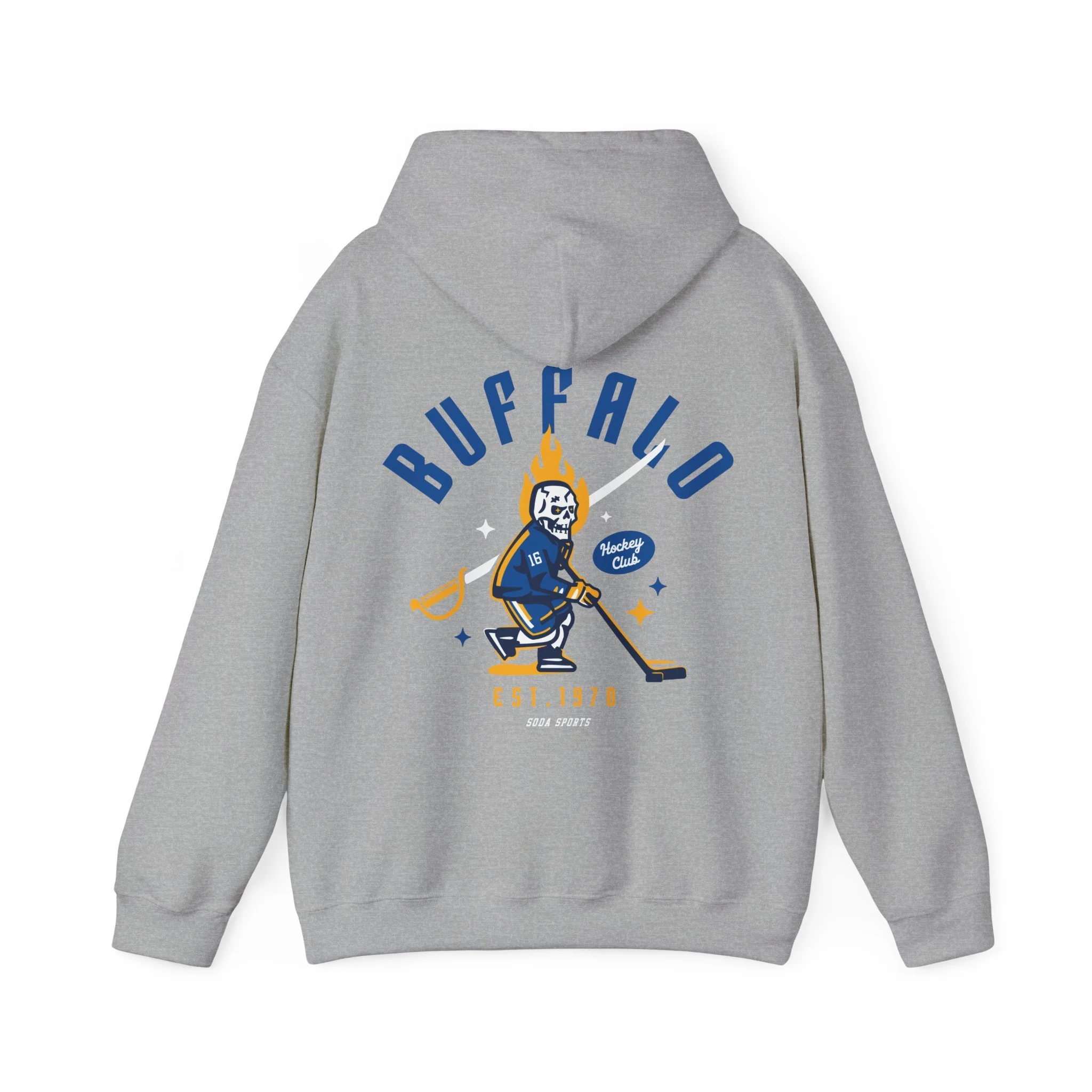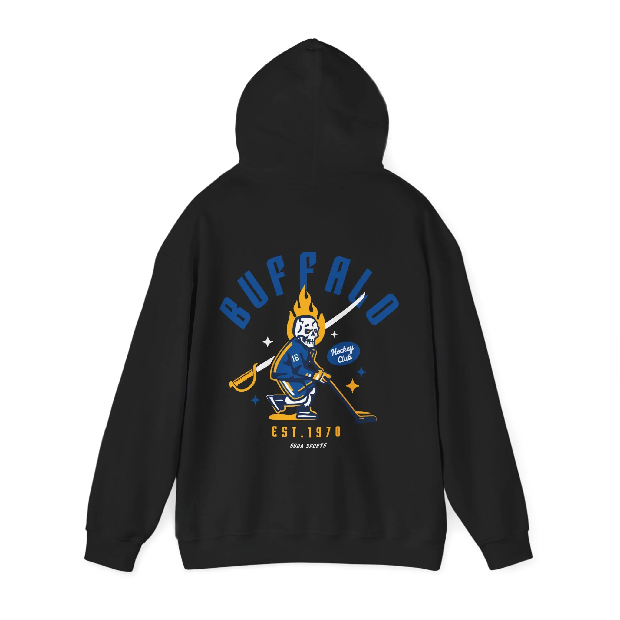 Show off your love for the Sabres with this stylish hockey hoodie! Soft and cozy, this sweatshirt features an attention grabbing graphic that any hockey fan will love. Whether you're cheering from the stands or lounging at home, this comfortable and durable hoodie is perfect for showing your team pride. With its classic design and timeless graphic, it's the ideal addition to any fan's wardrobe. Grab yours today and represent the Buffalo in style! Hehe