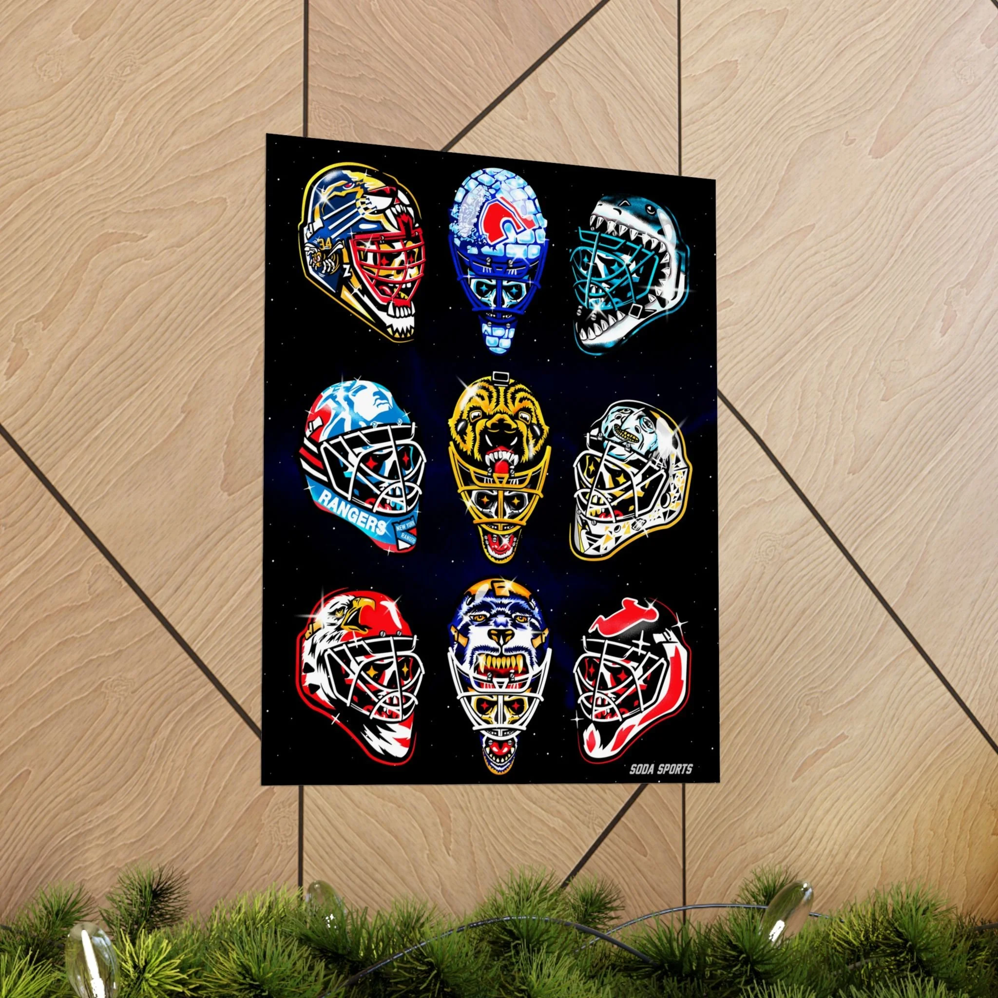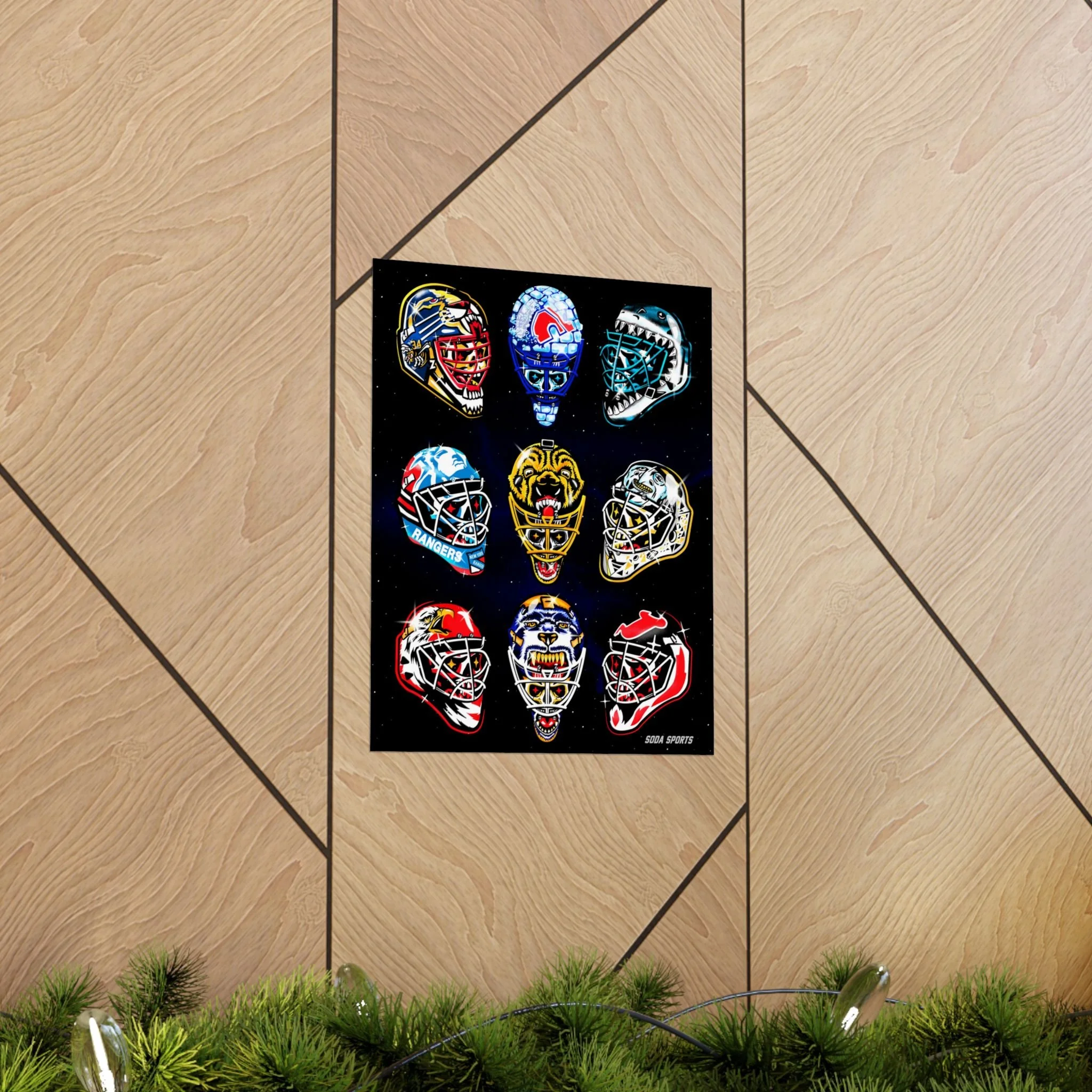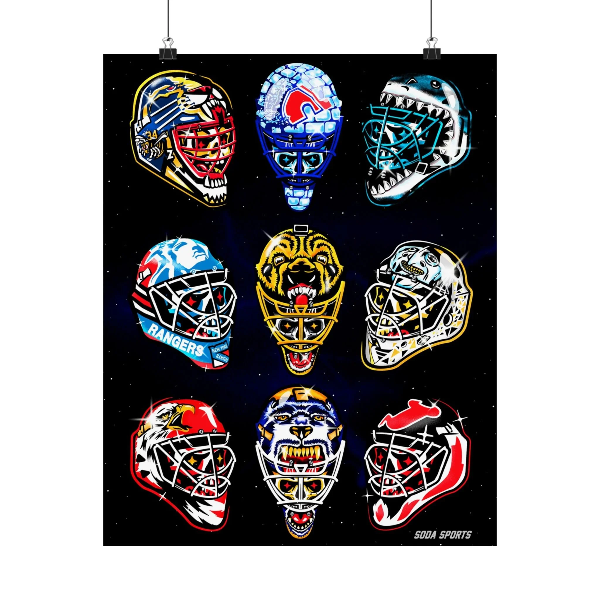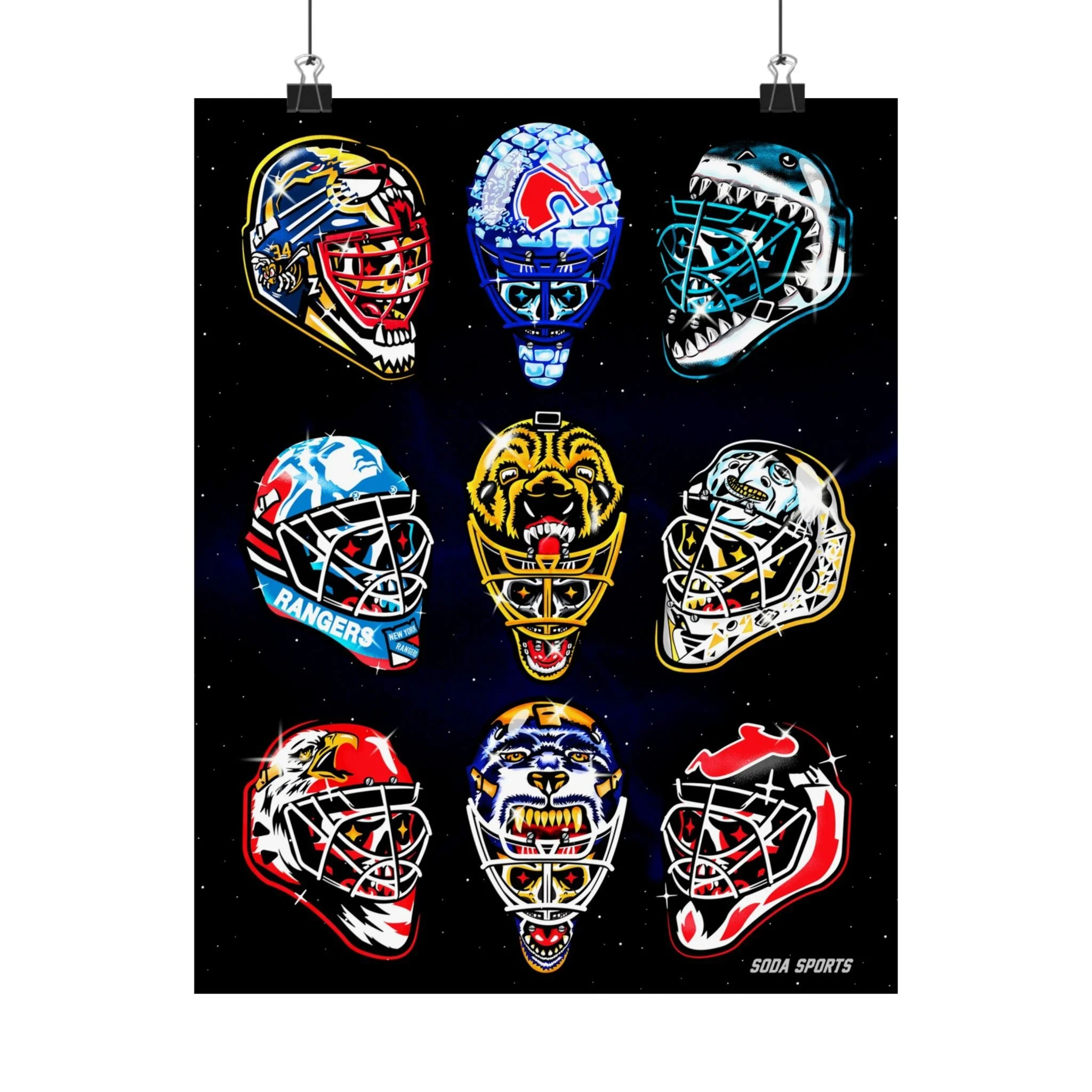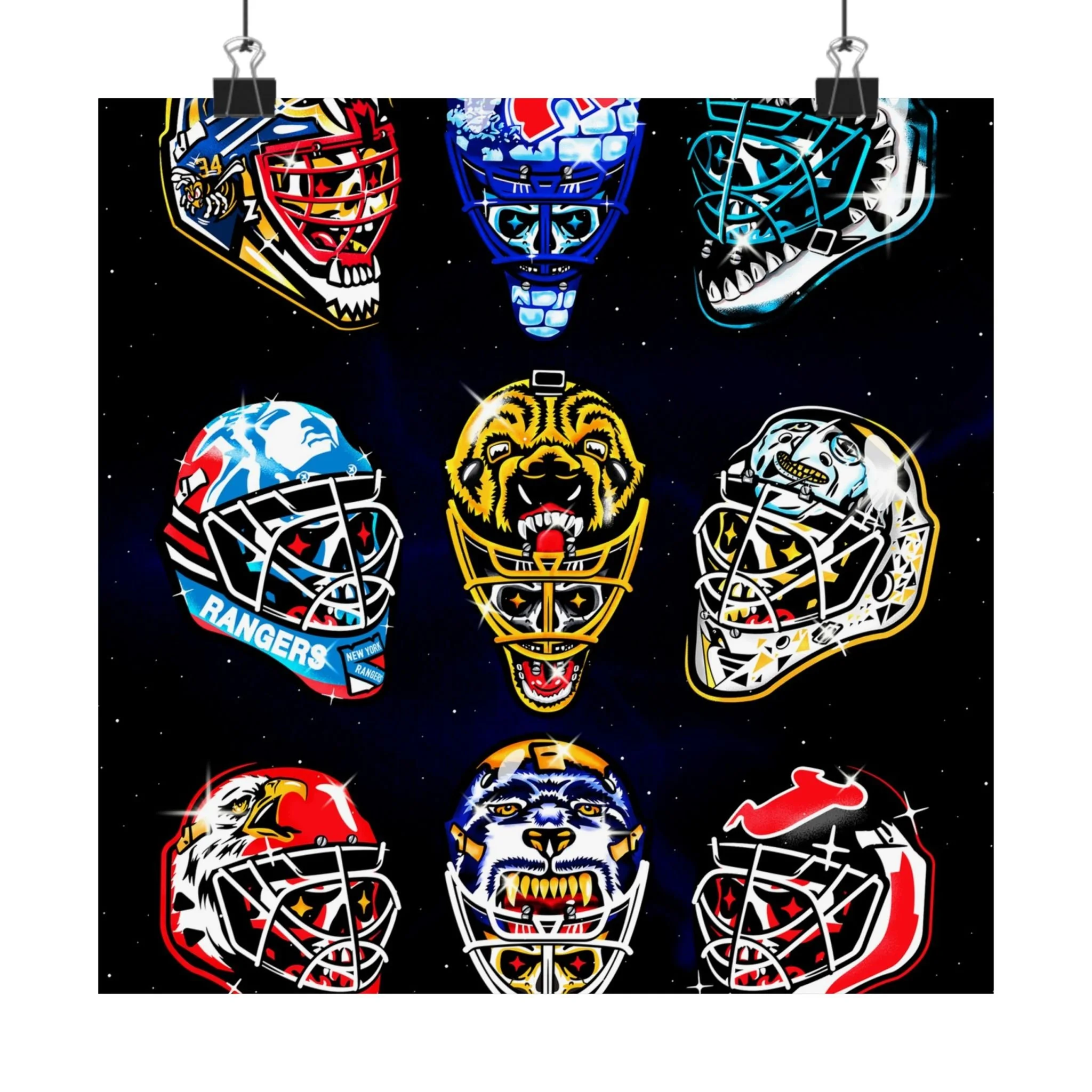 Remember the glory days of goalie masks with the beautiful print. Introducing the perfect means to print art on – the premium matte vertical posters. Made with museum-grade paper, these posters translate any digital artwork into exquisite real real-life decor. Available in multiple sizes, each poster is printed with top-tier pigmented archival inks for a stunning end result. .: Made with museum-grade archival paper for excellent printing fidelity and vibrant color reproduction .: Paper weight: 175 g/m² (Sensaria and Prodigi), 189 g/m² (Printify Choice) .: Find the perfect match to your customers' needs with 46 available sizes .: For indoor use only .: Please note: Due to the production process of these posters, please allow for slight size deviations with a tolerance +/- 1/16"