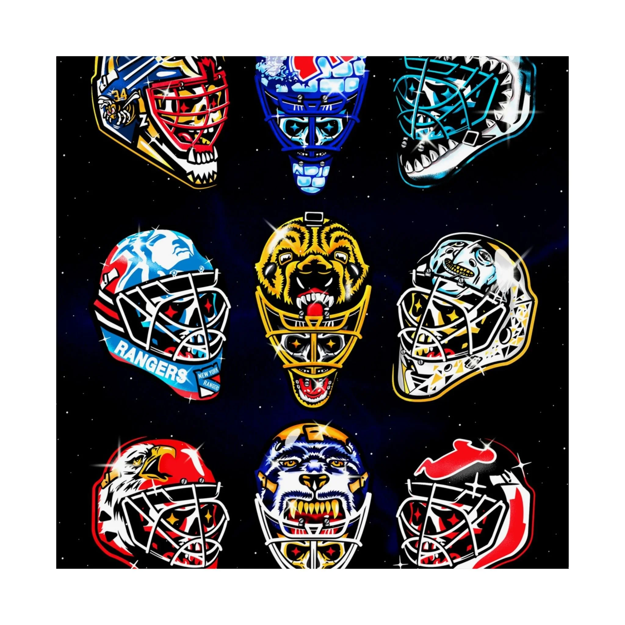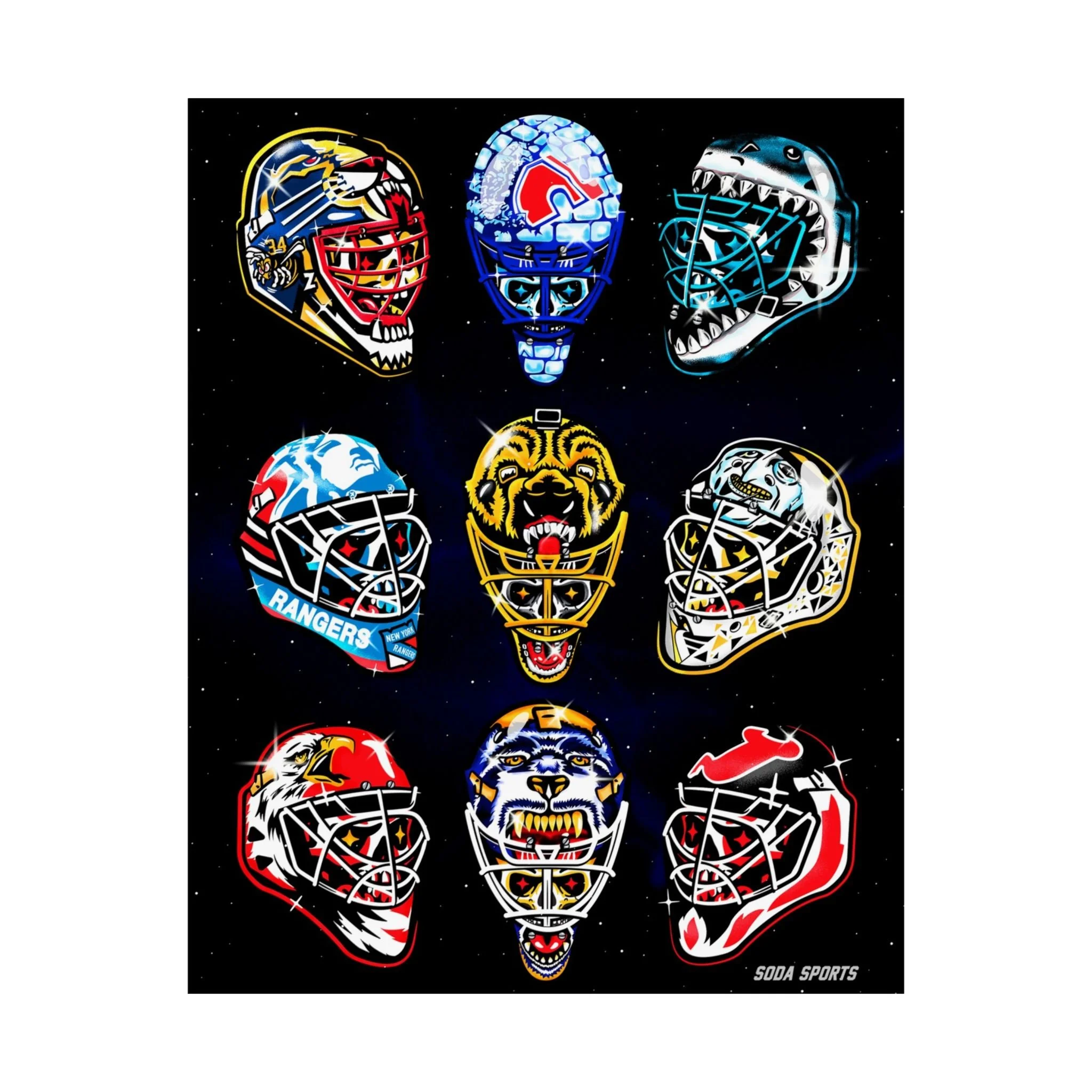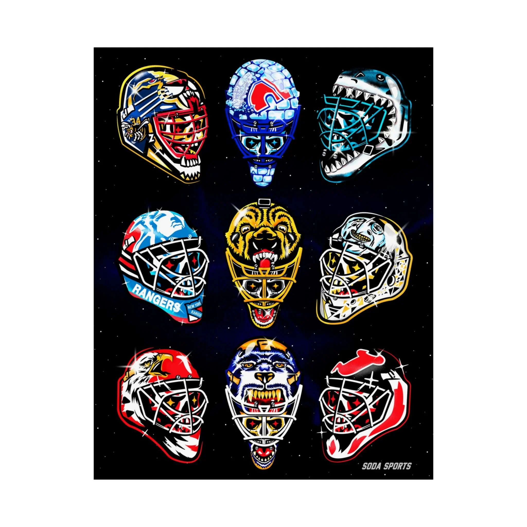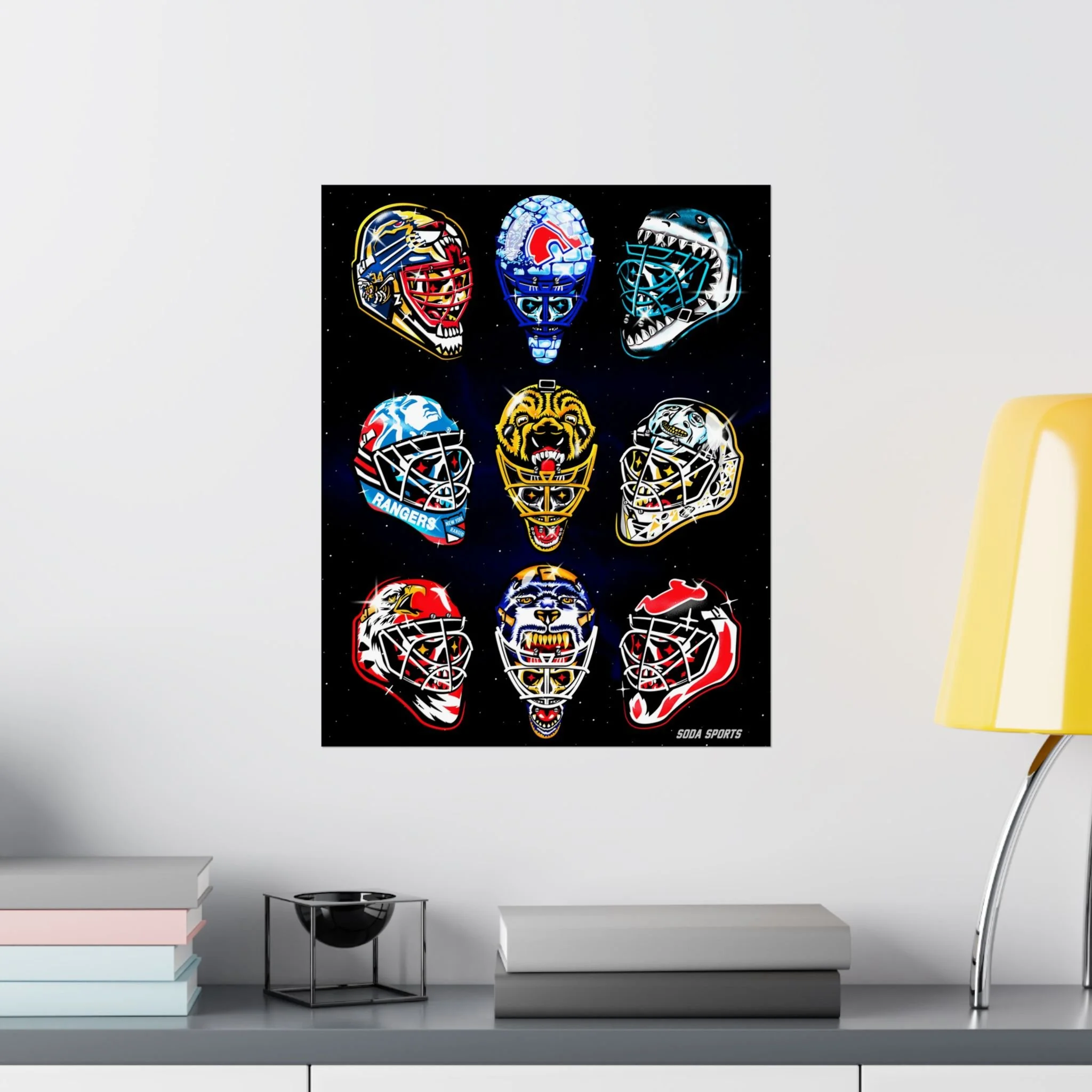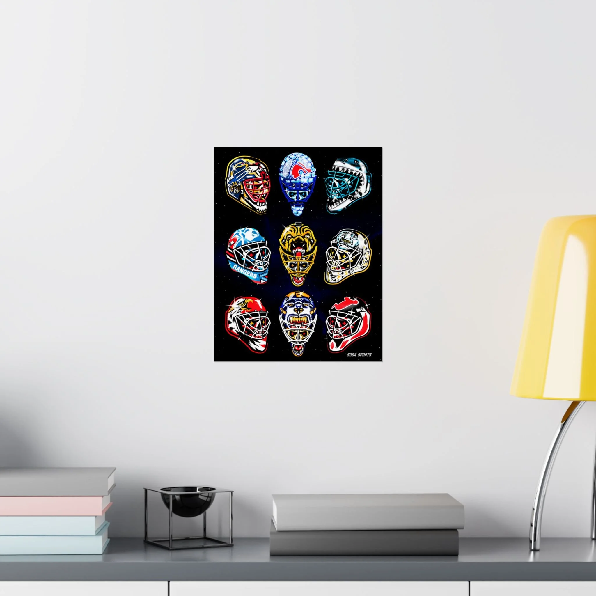 Remember the glory days of goalie masks with the beautiful print. Introducing the perfect means to print art on – the premium matte vertical posters. Made with museum-grade paper, these posters translate any digital artwork into exquisite real real-life decor. Available in multiple sizes, each poster is printed with top-tier pigmented archival inks for a stunning end result. .: Made with museum-grade archival paper for excellent printing fidelity and vibrant color reproduction .: Paper weight: 175 g/m² (Sensaria and Prodigi), 189 g/m² (Printify Choice) .: Find the perfect match to your customers' needs with 46 available sizes .: For indoor use only .: Please note: Due to the production process of these posters, please allow for slight size deviations with a tolerance +/- 1/16"