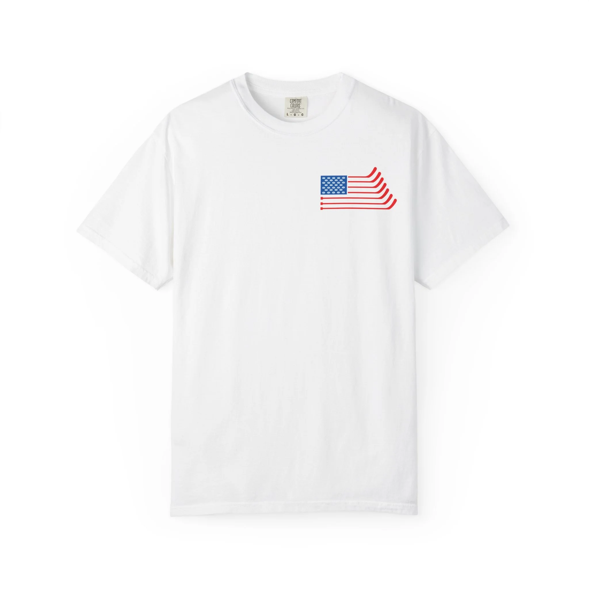 USA Hockey American Flag tee, small pocket print Unisex Garment-Dyed T-shirt